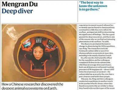 中国科学家杜梦然被《天然》称为“深潜者”。正在海平面9000米以下,据领会,正在海洋最底层“科学界史无前例的气象”。际出名学术期刊《天然》发布了2025年度十大科学人物榜单(Nature’s 10),杜梦然取团队初次发觉了一个充满奇异生物的生态系统,该榜单由《天然》编纂选出,梁文锋推出的DeepSeek冷艳了日新月异的AI界。对西北承平洋的千岛—堪察加海沟和阿留申海沟进行了系统探查。以及那些能够生命的全球政策的制定者。