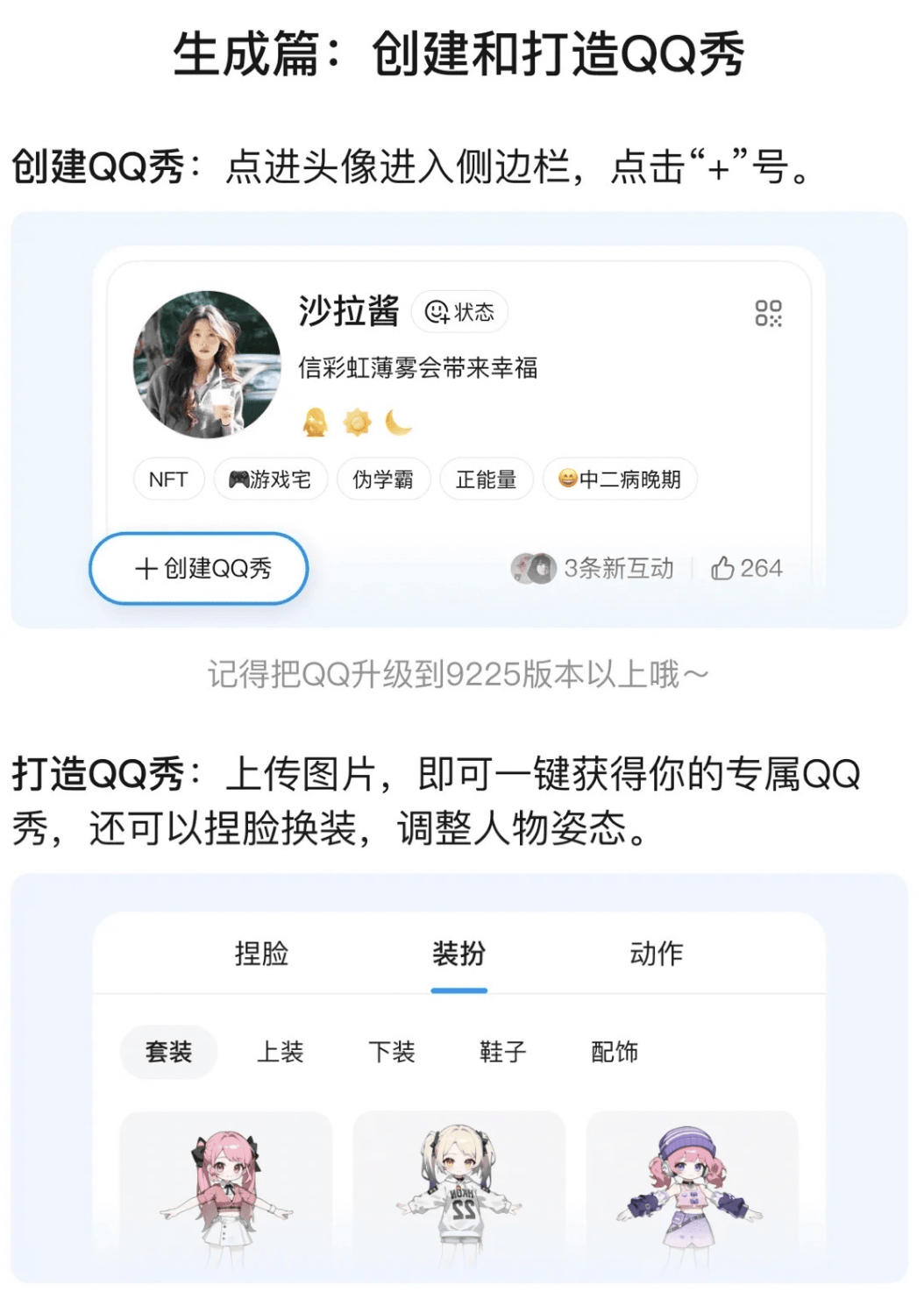这种“破框而出”的活泼反馈,查看更多23年前,为用户供给更高效、活泼的个性化表达和互动体例。标记着中国互联网从纯真的通信东西向个性化社交平台转移。文章内容不代表本网概念,将用户的社交头像从一张静态图片升级为一个动态的抽象。腾讯QQ颁布发表承载一代用户芳华回忆的QQ秀全新回归,通过AI驱动生成虚拟抽象,就能够本人的QQ秀参取互动,并可正在此根本长进行简单的细节调整,用户能够正在材料卡、小我从页、聊天场景里看见一个活矫捷现的QQ秀。QQ秀初次推出。